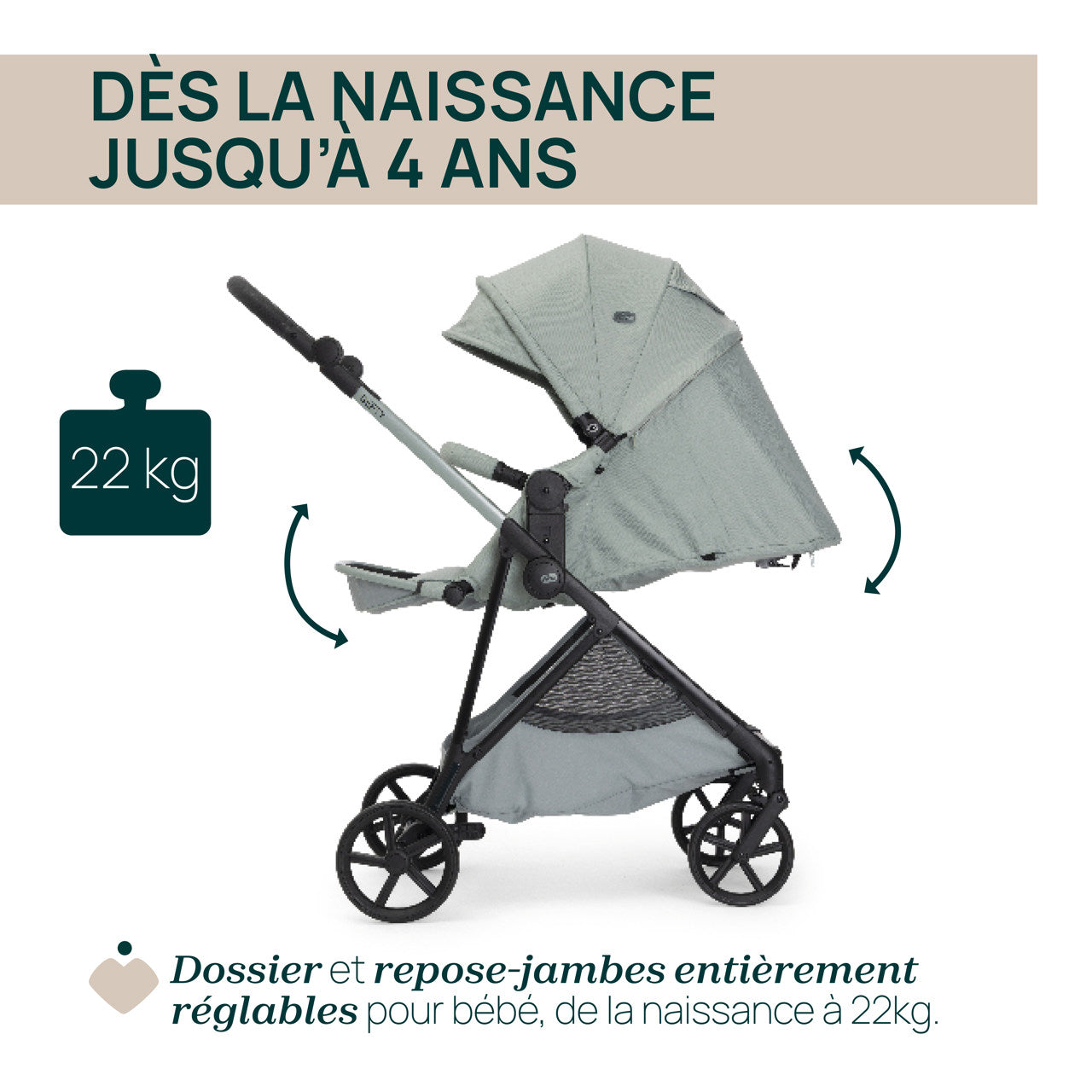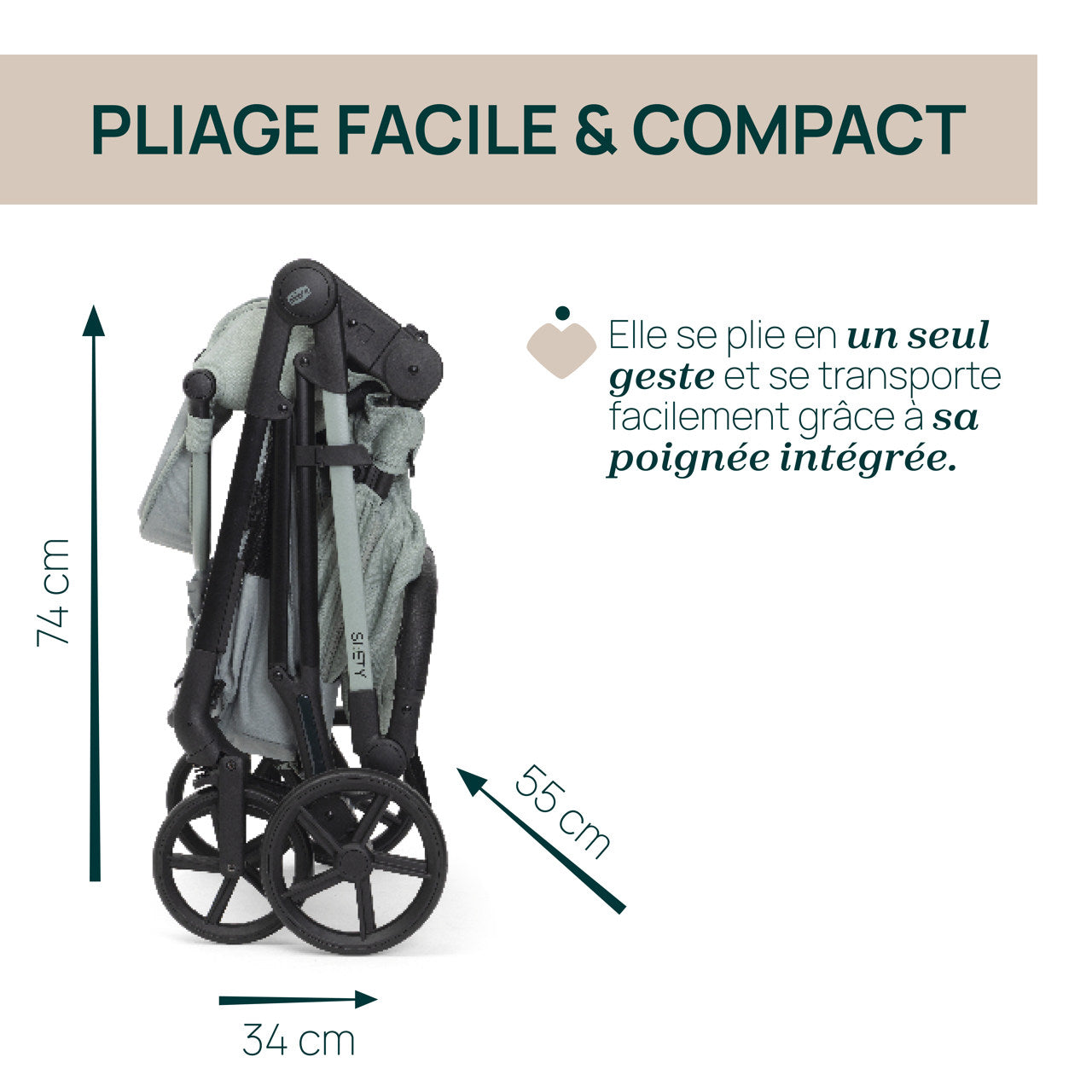 - La plus polyvalente des poussettes compactes : elle ne pèse que 7 kg et peut être facilement pliée d'une seule main pendant que vous portez bébé !