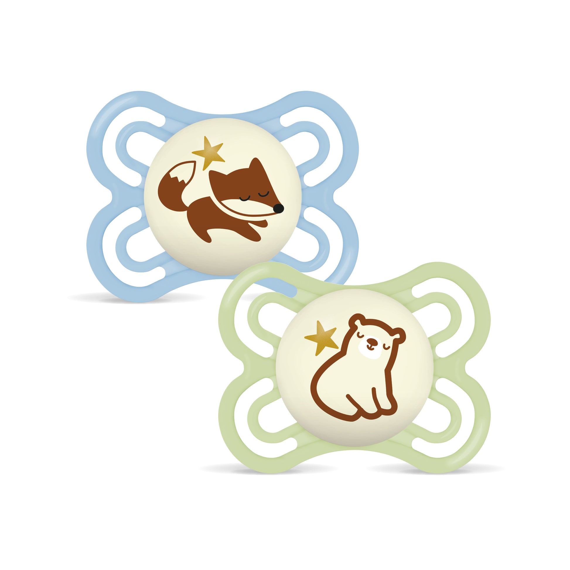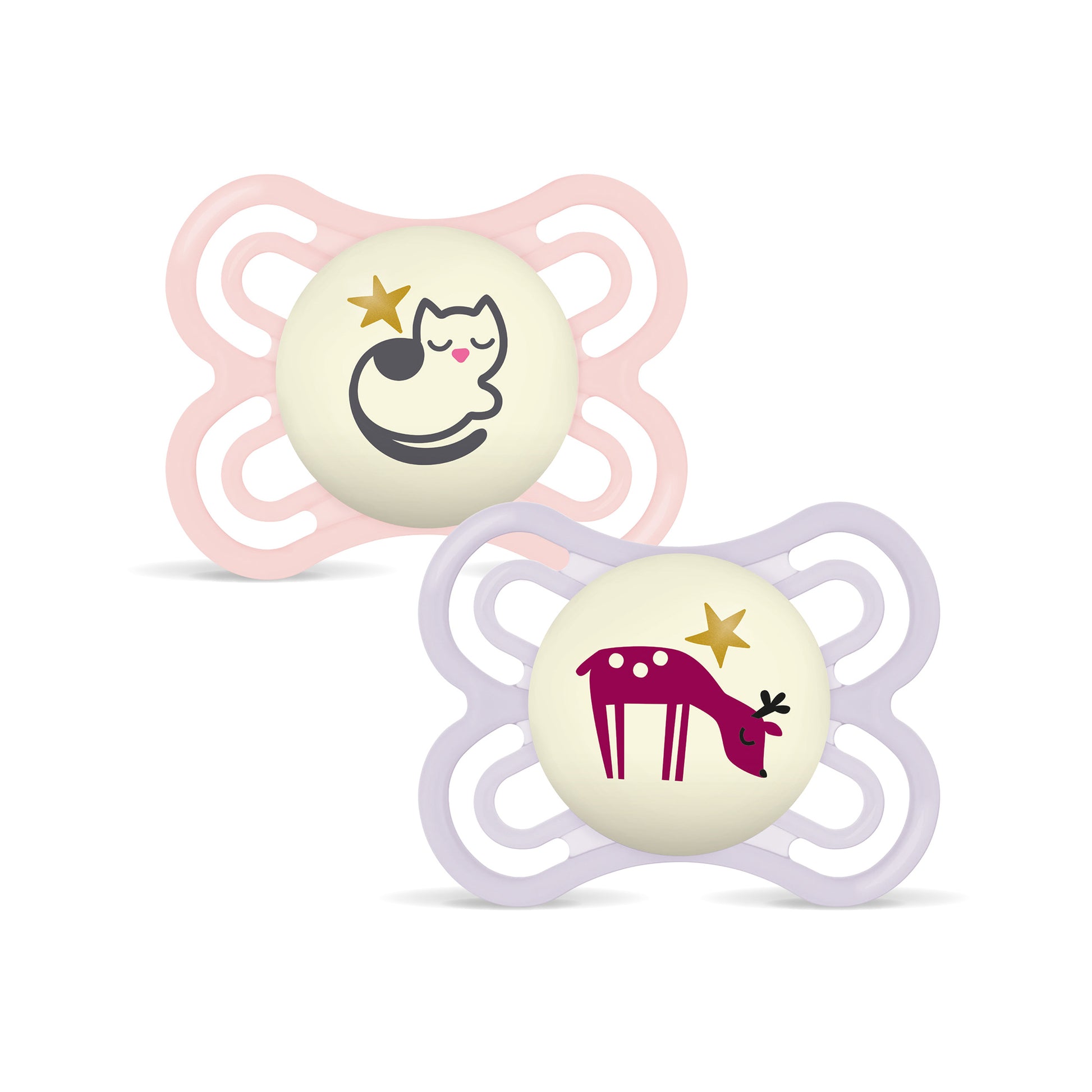 Sucette dès 0 mois. Brille dans le noir. CLINIQUEMENT PROUVÉ: réduire le risque de malposition dentaire.