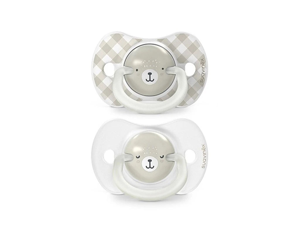 Lot de deux sucettes symétriques Wild&Free SXPro conçues pour le confort et le bien-être de bébé. Dotées d'un anneau phosphorescent pratique, ces tétines plates et symétriques épousent naturellement la forme du mamelon maternel. Fabriquées en silicone fin ultra-doux avec finition sablée, elles offrent une texture douce et apaisante. Leur design respecte le développement buccodentaire optimal de votre enfant, pour une succion naturelle et saine.